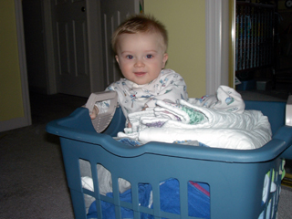 Here is a shot of Jackson enjoying our new laundry sorter.