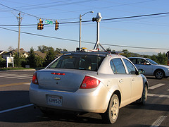 My tech-savvy wife spotted and correctly identified the Google Map's street view car in Chattanooga last week. Here is a shot of it working in Knoxville: